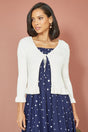 Yumi Ivory Tie Up Ribbed Cardigan With Frill Hem