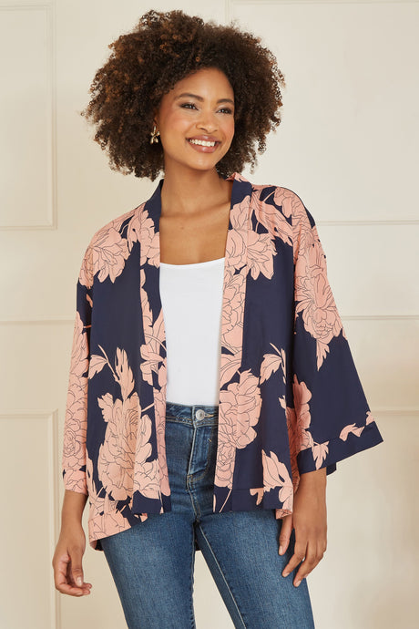 Mela Navy Blossom Print Wrap Midi With Dipped Hem