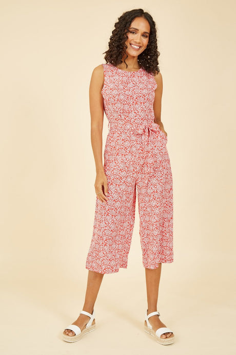 Mela Red Ditsy Floral Print Culotte Jumpsuit