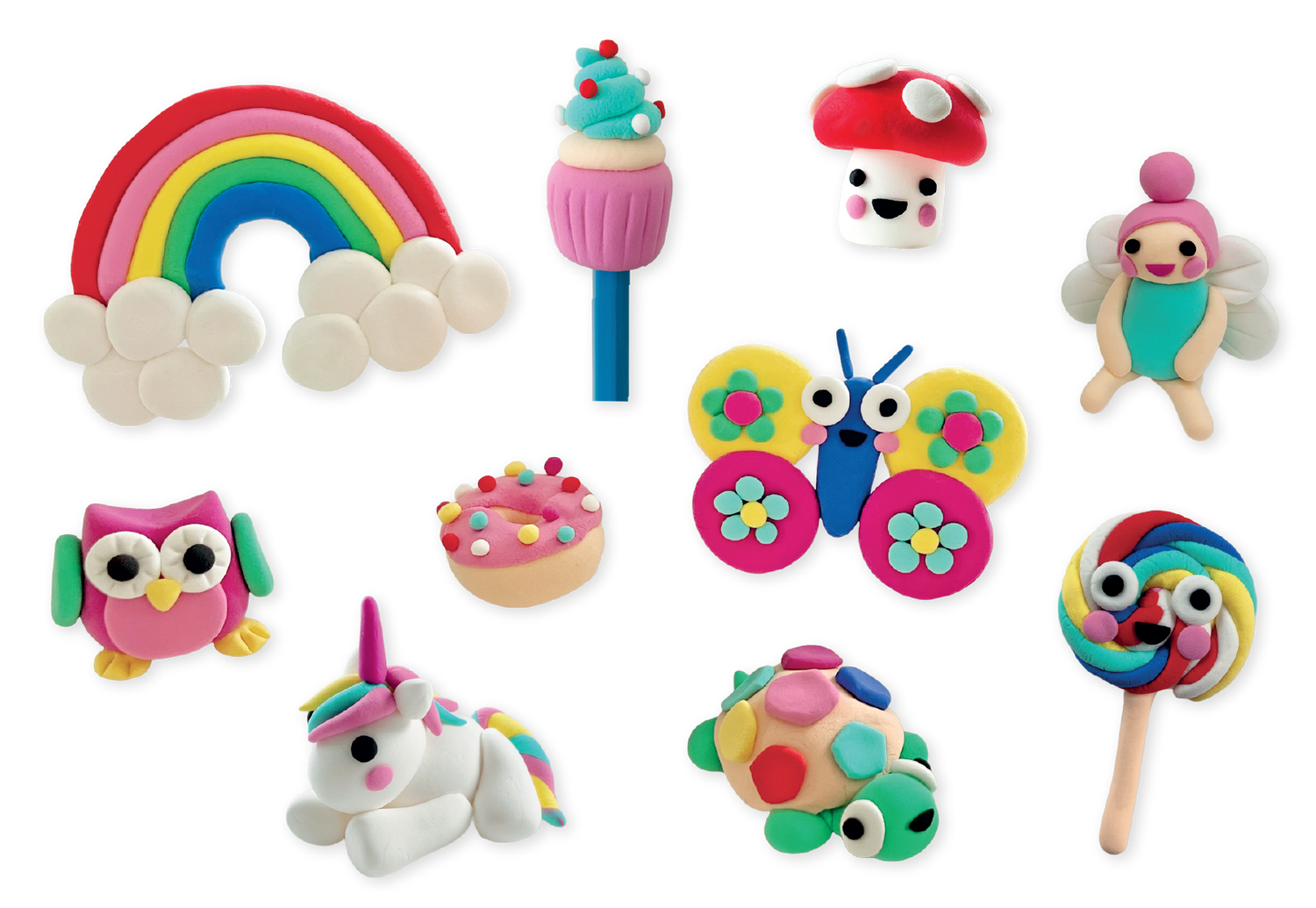 The Rainbow Fairy design enables you to create 10 magical rainbow pals by rolling, stretching and flattening the air dry clay provided. Use the wooden tool to add detail to your creations. The clay is soft to the touch and dries in the air, making it simple for little hands to work with (thanks to the silicone mat provided, there’s minimal cleaning up too).