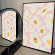 Bring a touch of playful cheer into your space with the "Joyful Garden" print. This delightful artwork features a whimsical pattern of white daisies, each with a happy smiley face, set against a soft pink background. The charming design is perfect for adding a fun and lighthearted vibe to any room.