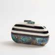The "Persephone" Clutch is a celebration of contrasts, just like the goddess it's named after. Crafted with meticulous attention to detail, this clutch features a harmonious blend of luminous mother of pearl and striking, dark accents. The play of light and shadow on the iridescent surface of the mother of pearl creates a mesmerising effect that mirrors Persephone's allure.